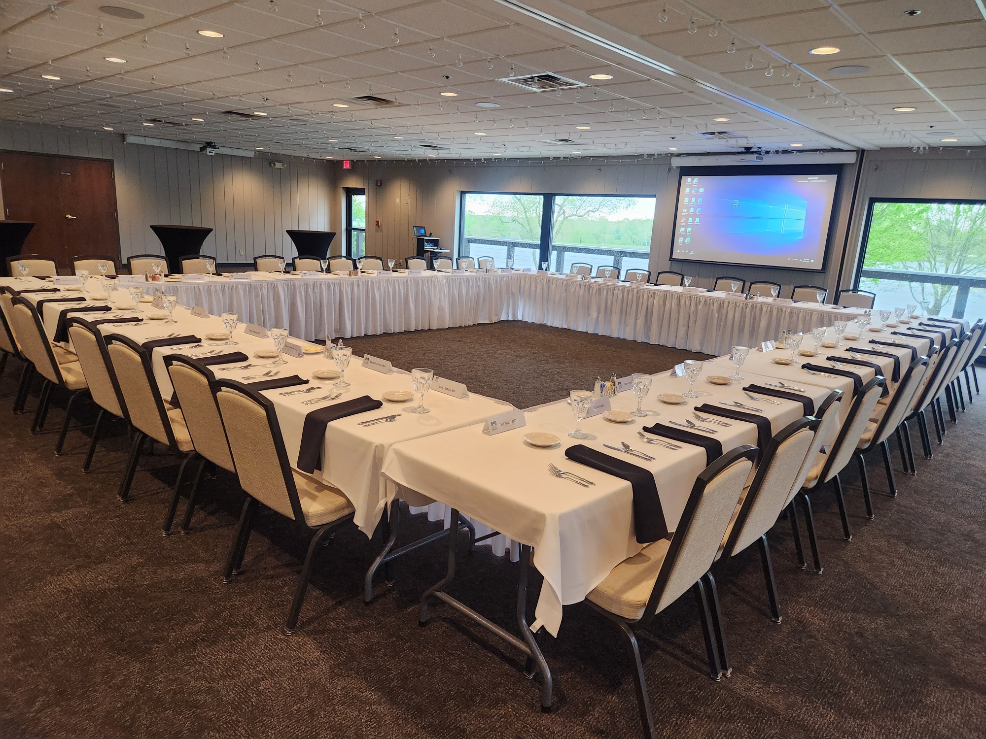 Capacity: Up to 152 seating on carpet only. Up to 184 with seating on the dance floor.